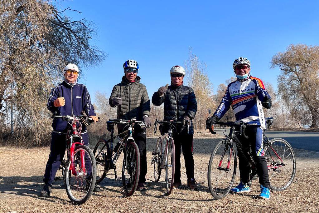 李興才(左二)與騎友們。新華社記者楊思琪 攝