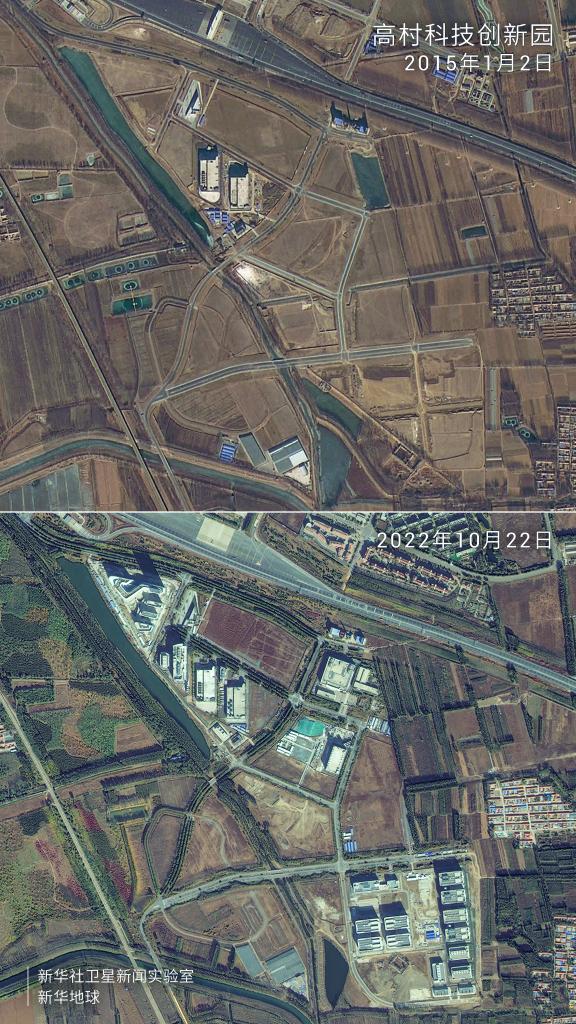 衛星拍攝的高村科技創(chuàng )新園對比圖