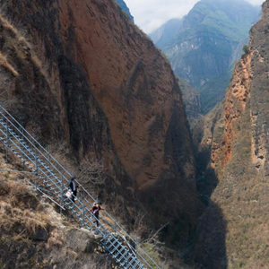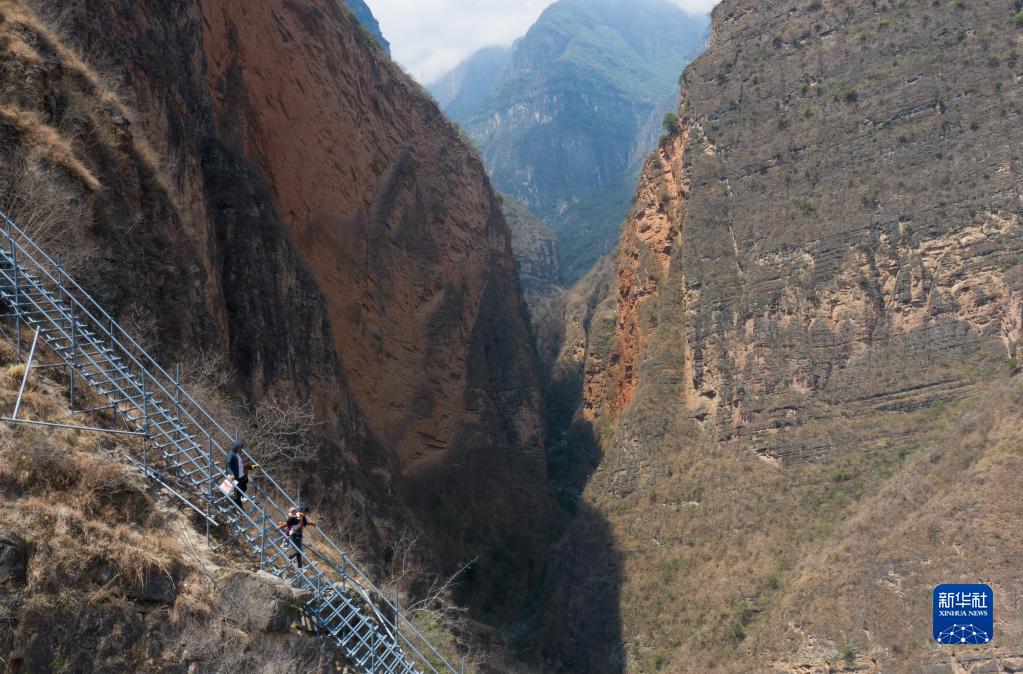 2020年5月13日,四川省涼山彝族自治州昭覺(jué)縣支爾莫鄉“懸崖村”——阿土列爾村高山區的貧困戶(hù)沿著(zhù)鋼梯下山,準備搬進(jìn)昭覺(jué)縣城易地扶貧搬遷安置點(diǎn)的新家(無(wú)人機照片)。新華社記者 江宏景 攝