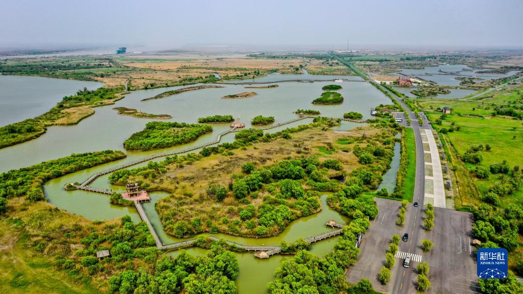 這是2021年5月13日拍攝的山東黃河三角洲國家級自然保護區景色(無(wú)人機照片)。新華社記者 郭緒雷 攝