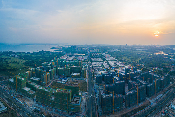 這是2022年9月26日在海南洋浦經(jīng)濟開(kāi)發(fā)區拍攝的建設中的東部生活區(無(wú)人機全景照片)。新華社記者蒲曉旭 攝