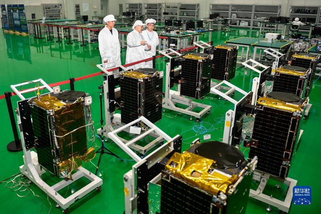 在吉林長(cháng)春,長(cháng)光衛星技術(shù)股份有限公司科研人員在衛星總裝測試大廳進(jìn)行相關(guān)測試工作 (2022年10月17日攝)。新華社記者 許暢 攝