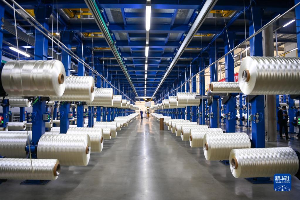 在吉林化纖集團國興碳纖維公司生產(chǎn)車(chē)間,工人在整理碳纖維原絲(2022年10月31日攝)。新華社記者 顏麟蘊 攝