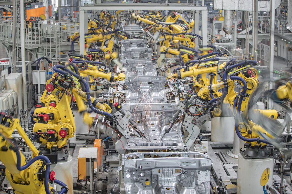 3月1日,在長(cháng)城汽車(chē)重慶永川生產(chǎn)基地焊裝車(chē)間,智能化焊接機器人在進(jìn)行焊接作業(yè)。新華社記者 黃偉 攝
