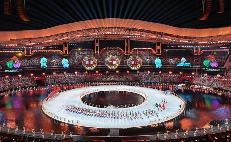 第十五屆全國運動(dòng)會(huì )9日晚在廣東奧林匹克體育中心開(kāi)幕。以《圓夢(mèng)未來(lái)》為主題的文體展演講述了粵港澳大灣區從千年歷史走向未來(lái)發(fā)展的壯闊歷程。主創(chuàng )團隊在開(kāi)幕式結束后的新聞發(fā)布會(huì )上表示,從空間敘事、藝術(shù)表達再到最后三地運動(dòng)員共同點(diǎn)燃主火炬,開(kāi)幕式處處體現著(zhù)粵港澳文化交融。