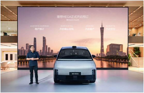 2023年11月17日,理想MEGA在2023廣州國際車(chē)展完成全球首秀,并同步開(kāi)啟預訂,預計售價(jià)60萬(wàn)元以?xún)?。按照規劃,理想MEGA將于12月正式發(fā)布,并于明年2月開(kāi)啟量產(chǎn)和用戶(hù)交付。