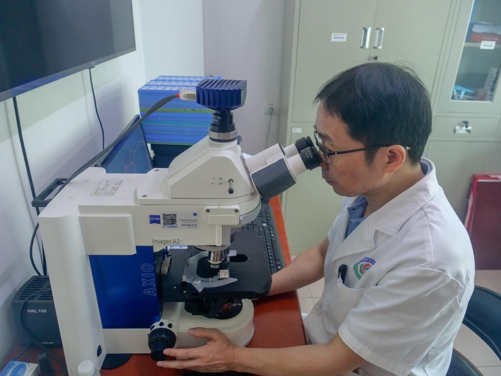 一臺顯微鏡、一個(gè)電腦工作站、幾十張病理切片——走進(jìn)南昌大學(xué)第一附屬醫院罕見(jiàn)病中心主任洪道俊的辦公室,門(mén)口擺放的實(shí)驗桌引人注目,每周他和學(xué)生都會(huì )在這里集中“讀片”,研討近期接診罕見(jiàn)病患者的病理切片。