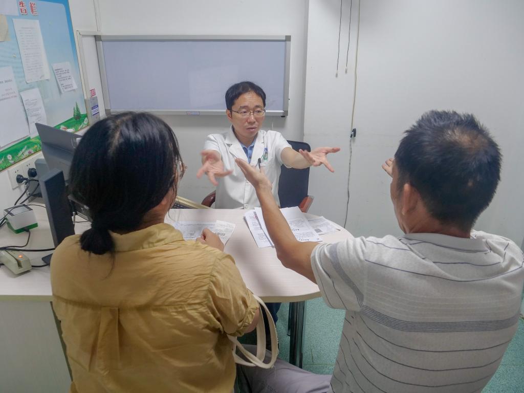 洪道俊在診室查看患者肢體動(dòng)作。新華社記者 郭杰文 攝