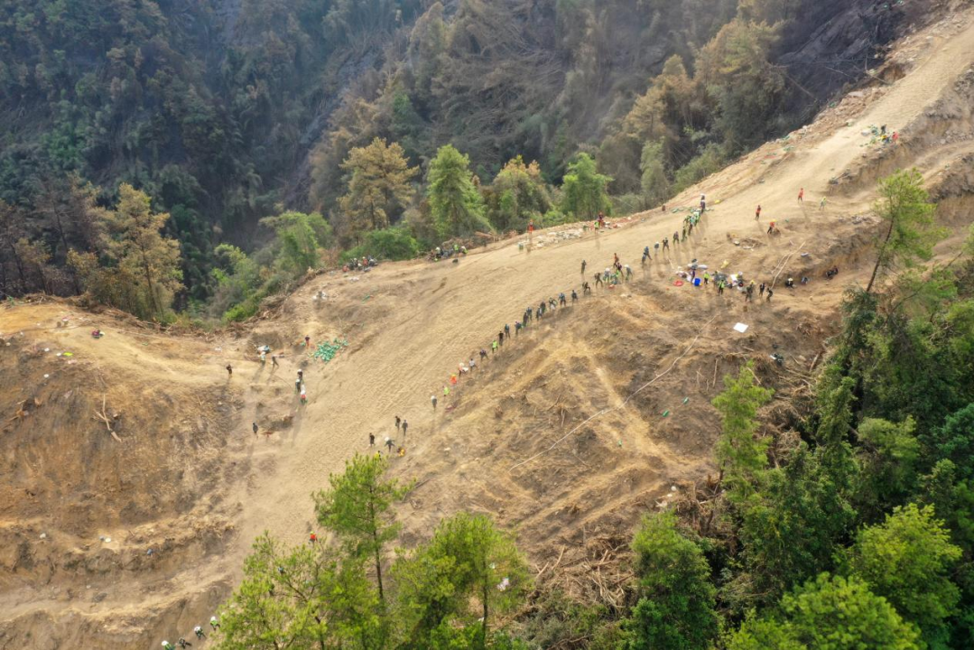 下山途中的場(chǎng)景,也讓我震驚:幾公里長(cháng)的狹窄山路上,每隔一兩米就一定有志愿者,他們是負責物資傳送的,很多救援和保障物資就是這樣一件件被傳送上山頂的。因為這幾公里的山林,連摩托車(chē)都進(jìn)不來(lái),只能靠人力,于是志愿者們組成“人鏈”,手把手將急需的物資運送到山頂。