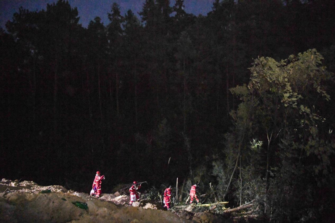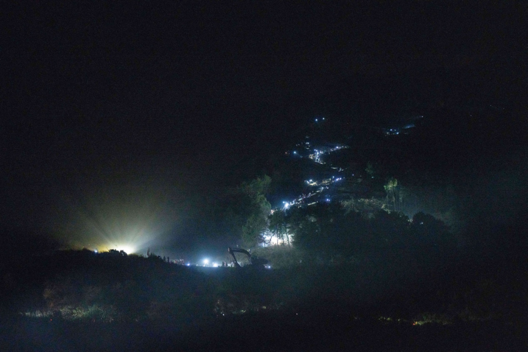 這是8月25日晚在隔離帶山頂拍攝的救援人員。