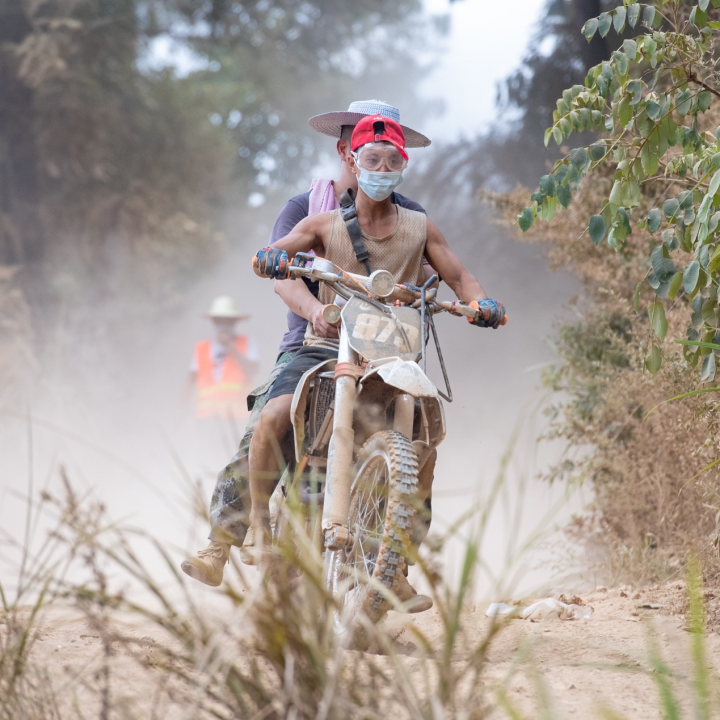 這也是我第一次嘗試搭乘越野摩托,實(shí)話(huà)實(shí)說(shuō)體驗非常不好,一是前車(chē)濺起的沙石沖進(jìn)眼鼻口,嗆得我幾乎無(wú)法呼吸。更重要的是在這陡峭的崖壁上飛馳,那夸張的后仰傾斜角度時(shí)刻在刺激我的神經(jīng),似乎在告訴我“快翻了”。果然,我們在上山路上摔車(chē)了,為了避開(kāi)一輛拋錨的摩托,騎手毫不猶豫地選擇沖往更陡的山坡,我們毫無(wú)意外地摔進(jìn)了泥坑里。沒(méi)有半秒鐘猶豫,騎手在扶起摩托的同時(shí)就使勁擰動(dòng)了油門(mén)。