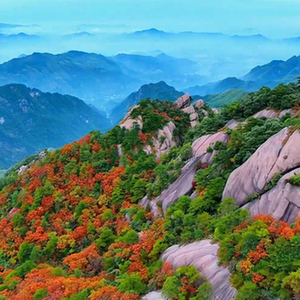 登高遠眺,高山、秋葉、云海,讓人如臨仙境。霜染丹林,明凈碧空,游人目之所及,皆是美景。