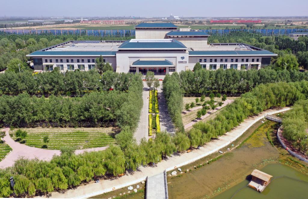 這是綠樹(shù)環(huán)繞下的甘肅省武威重離子中心(2023年6月16日攝,無(wú)人機照片)。新華社記者 郭剛 攝