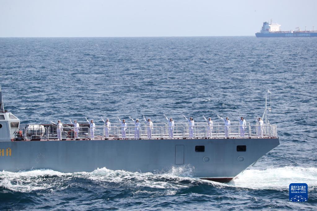 8月20日,“國際軍事比賽-2022”“海洋之杯”比賽在山東青島附近海域閉幕,俄方官兵揮手致意。新華社發(fā)(王光杰 攝)