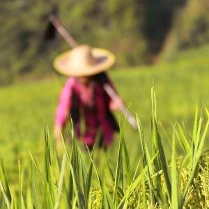 8月20日,貴州省丹寨縣高要村的村民在稻田里查看水稻長(cháng)勢。
