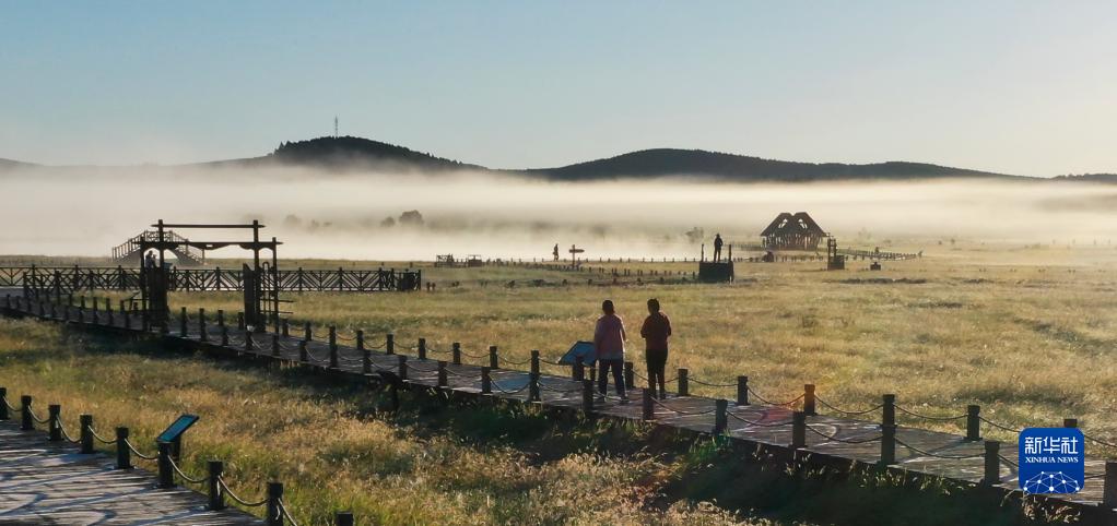 8月20日,游客在塞罕壩國家森林公園游玩(無(wú)人機照片)。