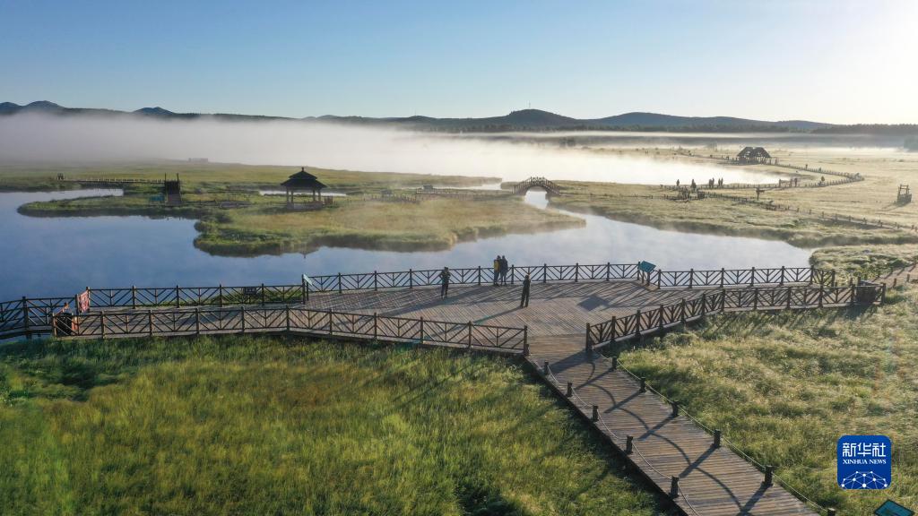 8月20日,游客在塞罕壩國家森林公園游玩(無(wú)人機照片)。