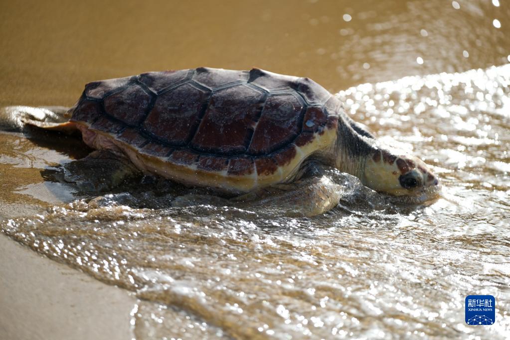 10月27日,在馬耳他馬尼卡塔的金海灣,一只經(jīng)過(guò)救治后康復的海龜被放歸大海。