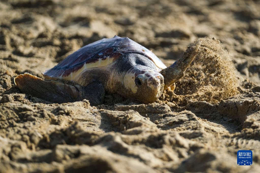 10月27日,在馬耳他馬尼卡塔的金海灣,一只經(jīng)過(guò)救治后康復的海龜被放歸大海。