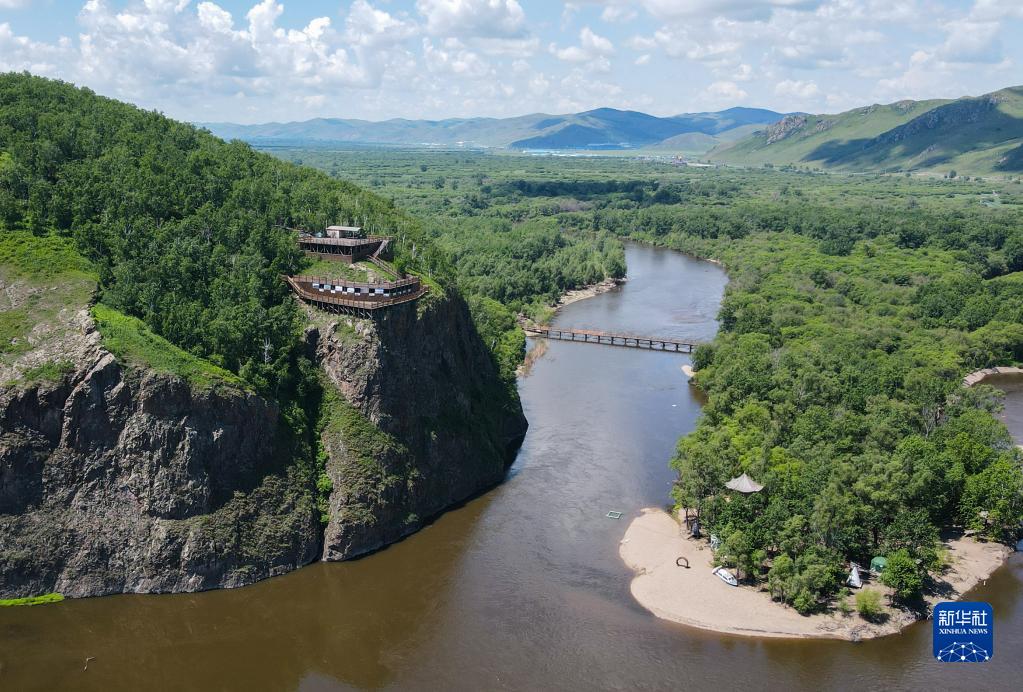 6月27日拍攝的額爾古納濕地風(fēng)光(無(wú)人機照片)。