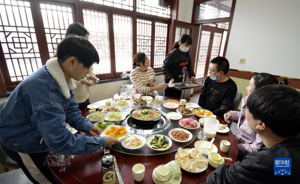 游人在柳溝村品嘗山村豆腐宴(11月2日攝)。