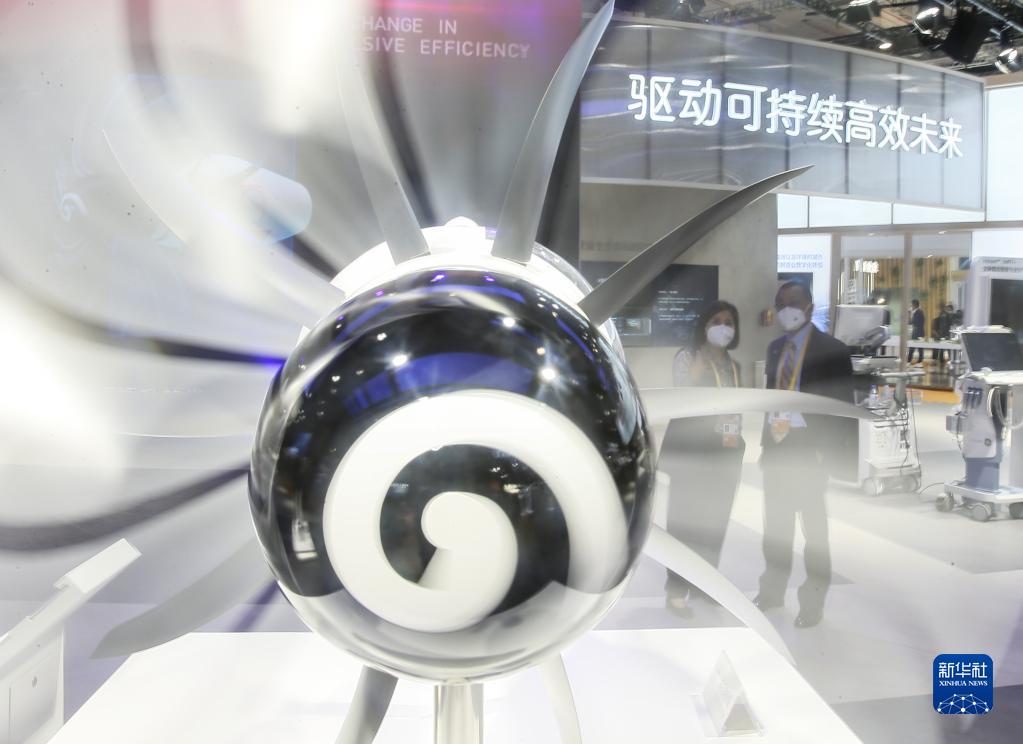 11月5日,工作人員在第五屆進(jìn)博會(huì )技術(shù)裝備展區美國通用電氣展臺向觀(guān)眾介紹產(chǎn)品。