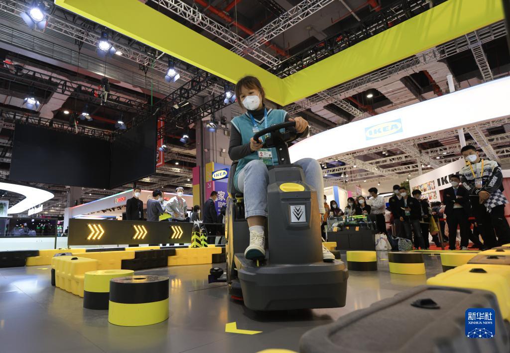 11月6日,參觀(guān)者在第五屆進(jìn)博會(huì )消費品展區體驗“洗地機”。