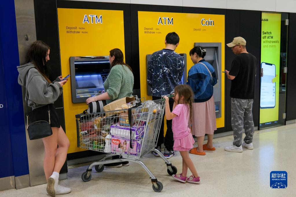 11月21日,人們在新西蘭最大城市奧克蘭的一處自動(dòng)提款機前等待取款。