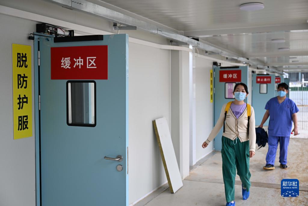 在廣州黃埔區中新知識城方艙醫院,醫護人員提前進(jìn)入熟悉設施情況(11月24日攝)。新華社記者 鄧華 攝