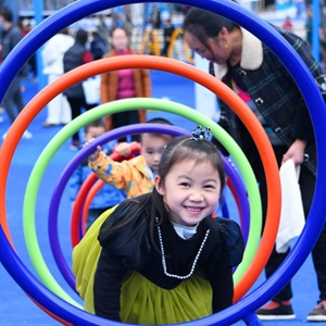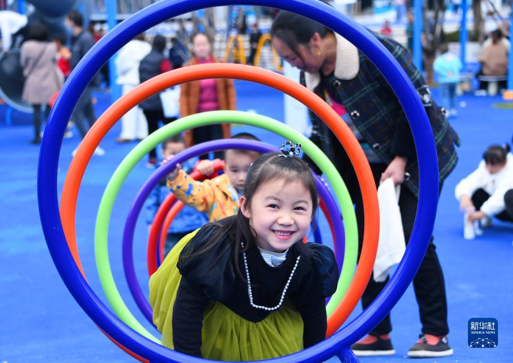 11月26日,小朋友在湖北省宣恩縣興隆街社區一處“口袋公園”游玩。