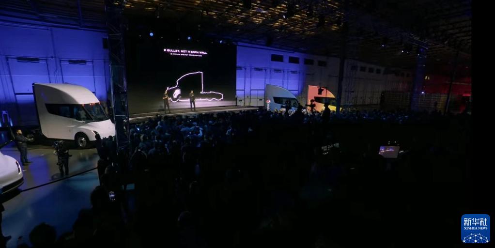 這張視頻截圖顯示的是12月1日,美國特斯拉公司在位于內華達州的超級工廠(chǎng)舉行首批Semi電動(dòng)卡車(chē)交付儀式。