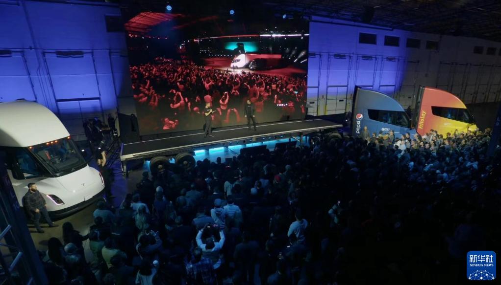 這張視頻截圖顯示的是12月1日,美國特斯拉公司在位于內華達州的超級工廠(chǎng)舉行首批Semi電動(dòng)卡車(chē)交付儀式。