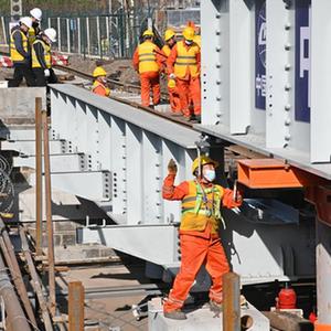 當日,有著(zhù)百年歷史的膠濟鐵路山東青島海岸路段鋼梁橋換梁順利完成。據了解,該橋始建于1901年,因年代久遠,梁體銹蝕、承載力衰減,存在一定安全隱患。鐵路建設者通過(guò)仿真模擬、數據驗算等技術(shù)手段,創(chuàng )新采用一體式換梁施工工藝,確保了舊梁拆除、新梁更換施工準確,為后續該路段列車(chē)安全通行提供了保障。