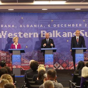 歐盟領(lǐng)導人6日在阿爾巴尼亞首都地拉那舉行的歐盟-西巴爾干國家峰會(huì )上,重申了歐盟對西巴爾干國家加入歐盟的承諾,并呼吁這些國家深化改革以加快入盟進(jìn)程。這是歐盟首次在非歐盟國家舉行峰會(huì ),西巴爾干國家領(lǐng)導人出席了此次峰會(huì )。