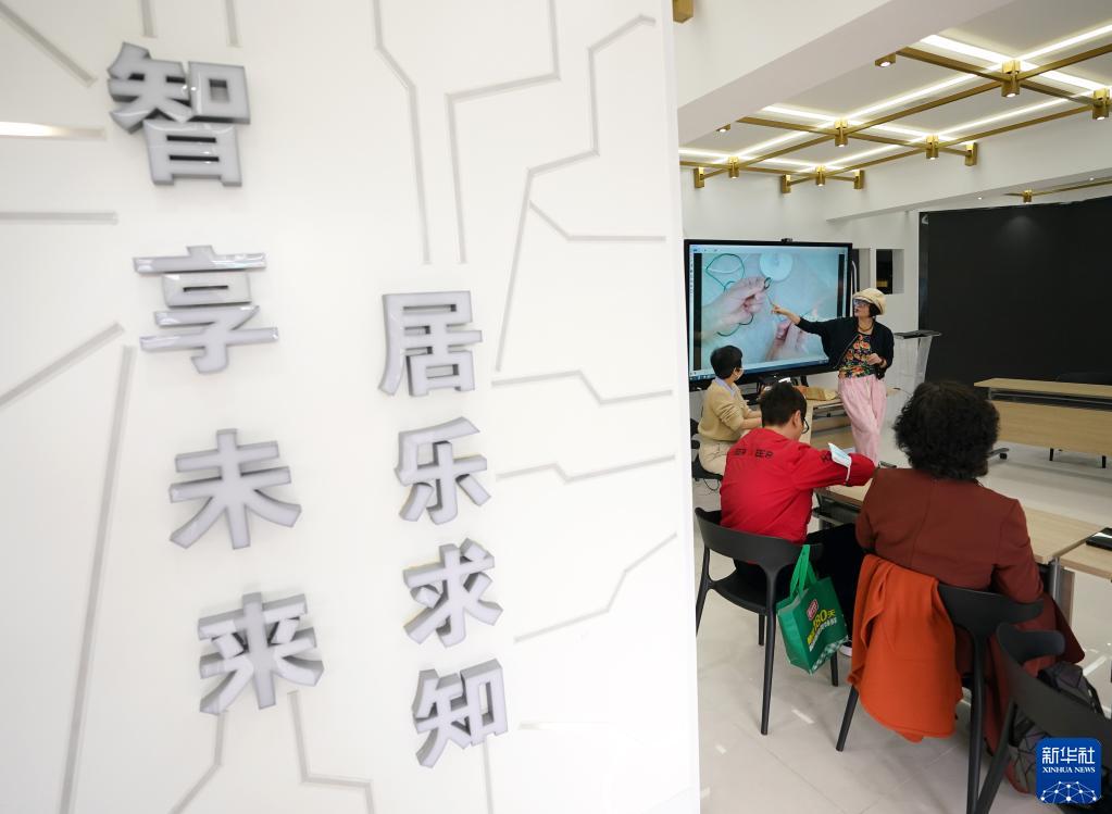 4月20日,杭州市西湖區西溪街道求智未來(lái)社區居民在未來(lái)社區會(huì )客廳內學(xué)習編織。