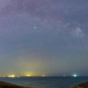 這是4月22日拍攝的俄羅斯符拉迪沃斯托克市切爾尼紹夫灣上空的銀河。