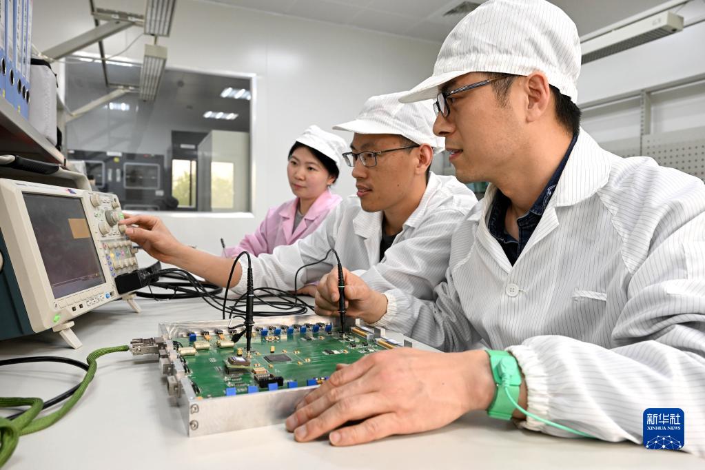 4月18日,在中科院合肥物質(zhì)科學(xué)研究院,安徽光學(xué)精密機械研究所環(huán)境光學(xué)研究中心成像光譜技術(shù)研究室副主任趙欣(前)和同事常振(中)、張露在測試CCD成像電路性能。