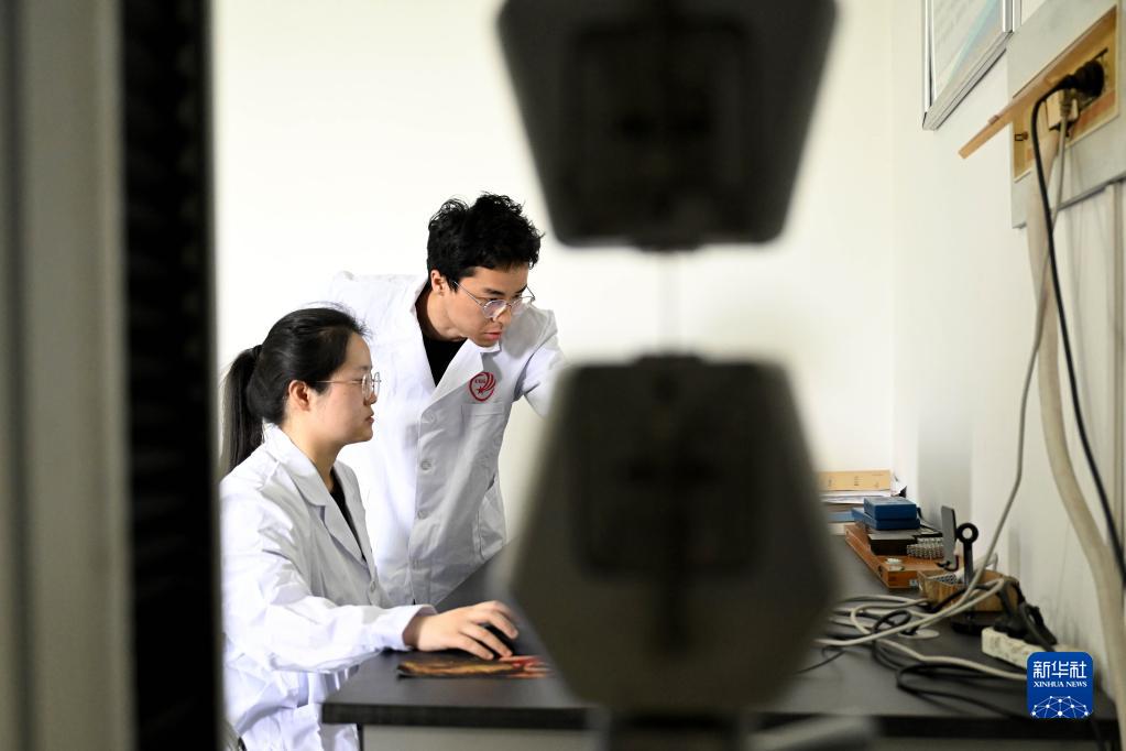 4月19日,在中科院合肥物質(zhì)科學(xué)研究院,固體物理研究所特種航天金屬材料研究團隊的學(xué)生在測試“嫦娥鋼”材料的拉伸性能。