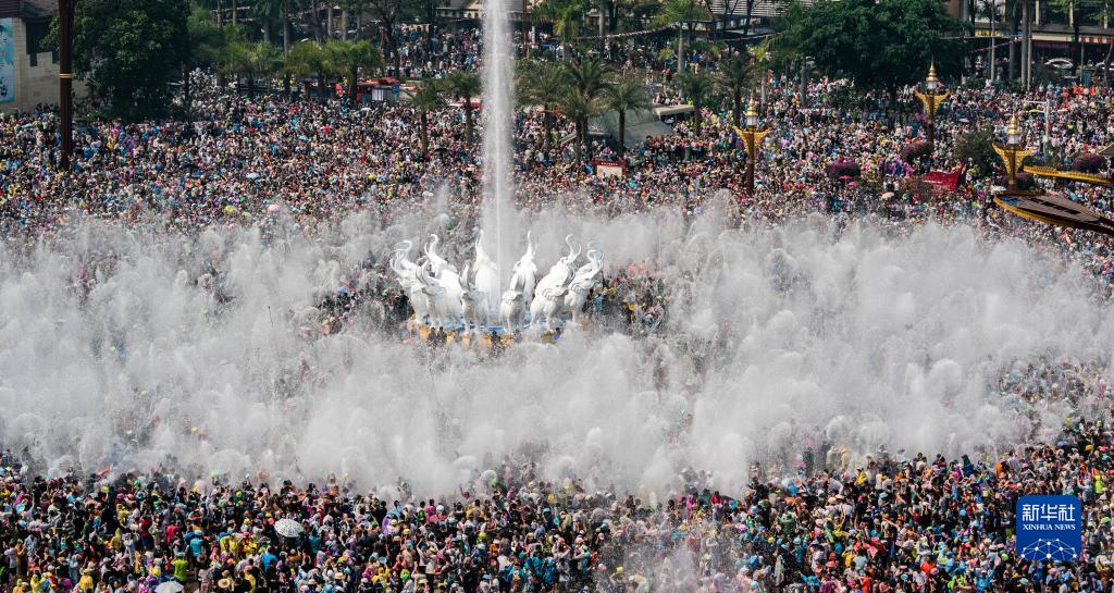 4月15日,人們在云南省西雙版納傣族自治州景洪市潑水廣場(chǎng)潑水狂歡。