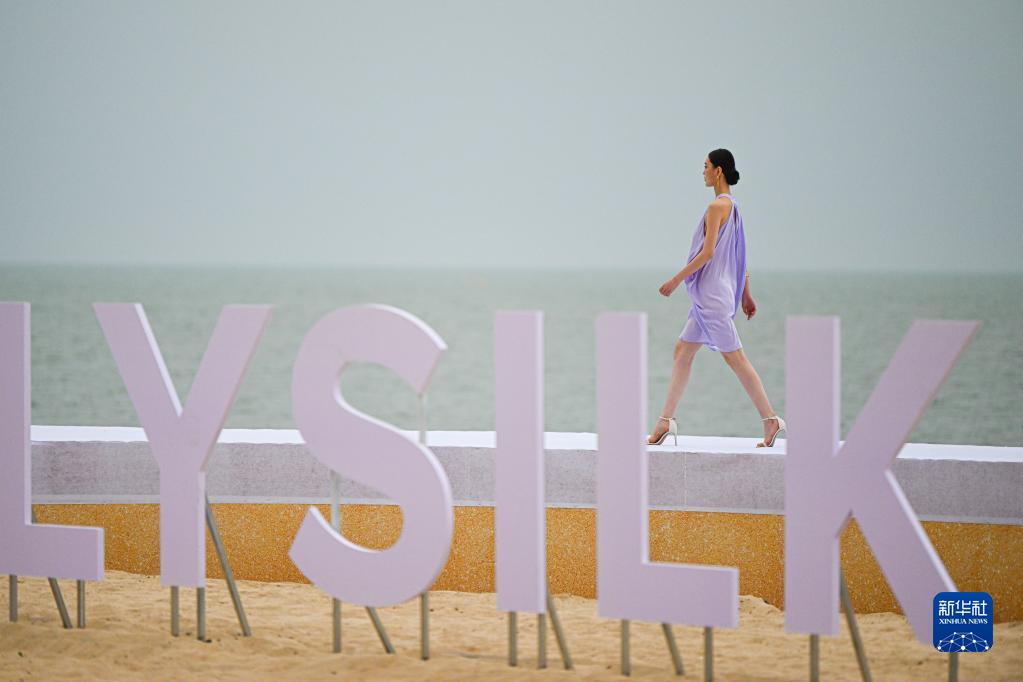 4月12日,模特在消博會(huì )時(shí)裝周海邊秀場(chǎng)展示時(shí)裝作品。