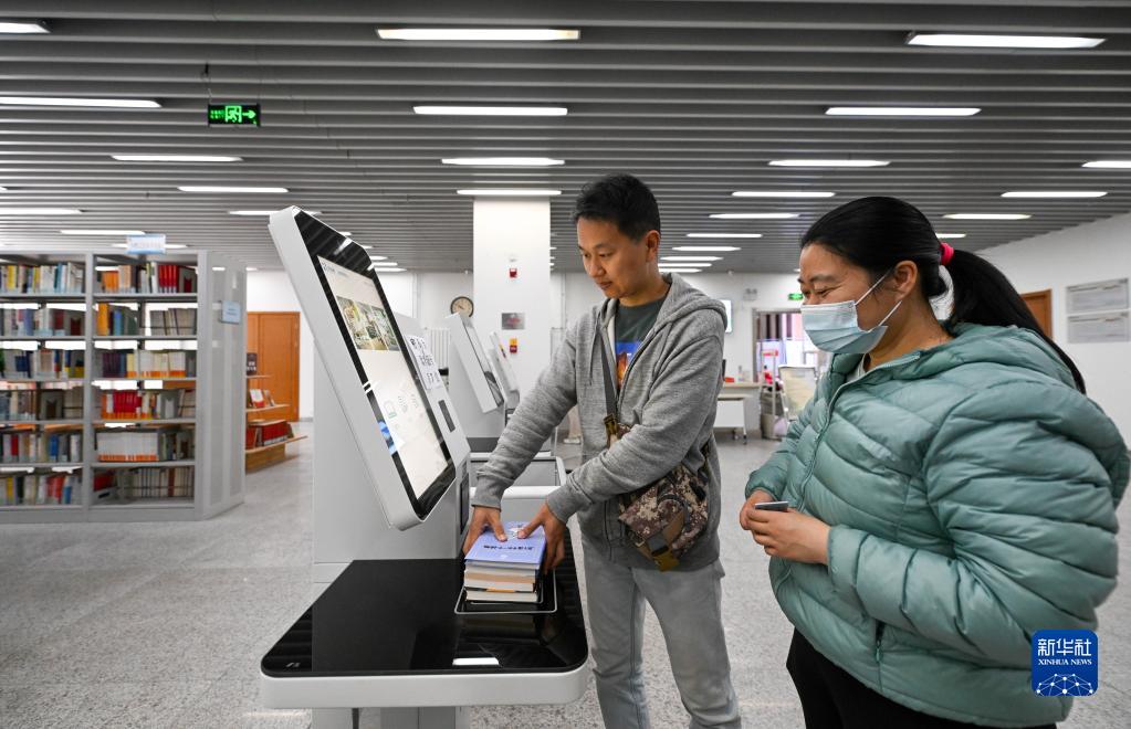 4月21日,在天津市河西區文化中心,讀者在區文化中心圖書(shū)館進(jìn)行圖書(shū)通借通還。