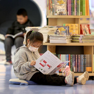 4月22日,小朋友在河北省石家莊市一家書(shū)店內閱讀繪本。