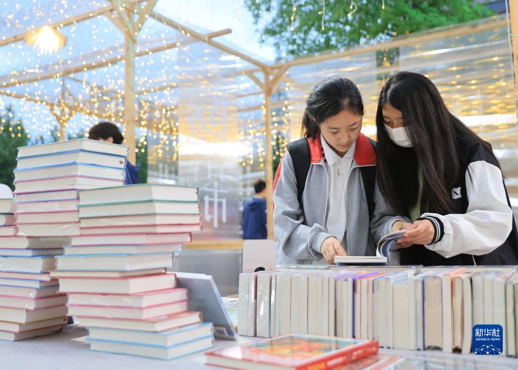 4月21日,在浙江省湖州市安吉縣圖書(shū)館廣場(chǎng)上,市民在“書(shū)香吉市”的線(xiàn)下書(shū)展上閱讀、挑選書(shū)籍。