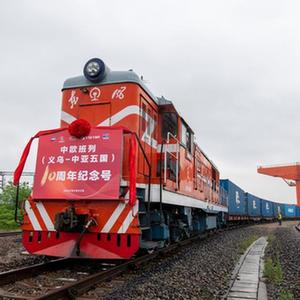 當日,載有100標準箱貨物的“義烏-中亞五國10周年紀念號”中歐班列在義烏西站鳴笛啟程,前往中亞五國,該趟列車(chē)也是義烏與中亞五國間開(kāi)行的第2024列中歐班列。