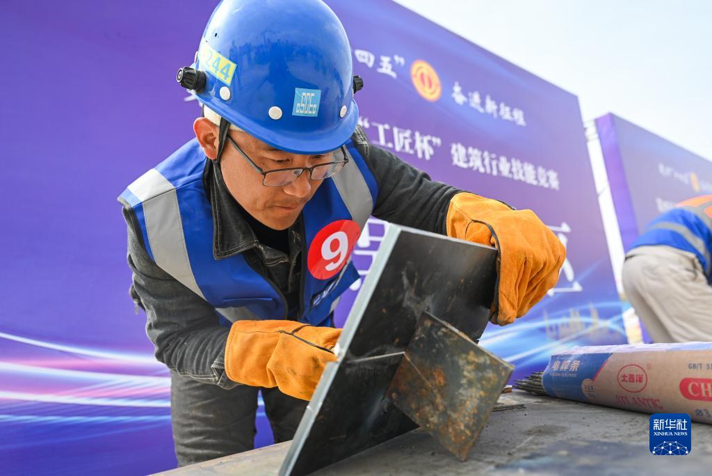 4月24日,建筑工人在參加職業(yè)技能比拼。