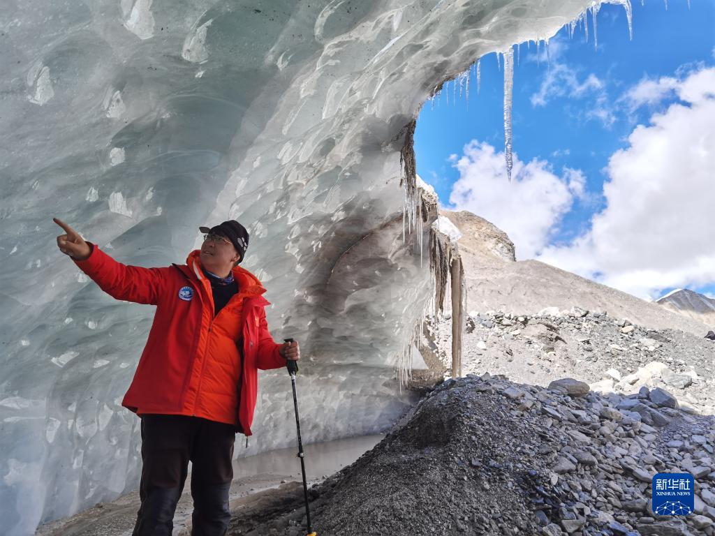 中國科學(xué)院西北生態(tài)環(huán)境資源研究院副院長(cháng)康世昌在珠峰東絨布冰川區域考察(5月8日攝)。新華社發(fā)