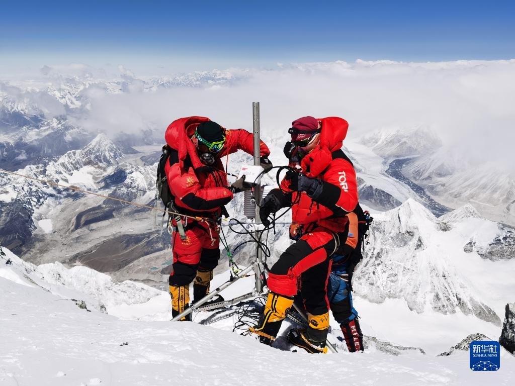5月4日,德慶歐珠帶領(lǐng)的登頂小組科考隊員,在珠峰海拔8830米處架設世界海拔最高自動(dòng)氣象站,建成珠峰梯度氣象觀(guān)測體系;在峰頂首次利用高精度雷達測量冰雪厚度,并采集了峰頂冰雪樣品。