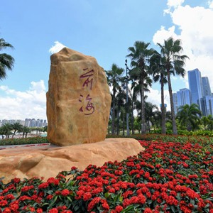 走進(jìn)綠意盎然的深圳前海石公園,一塊宛如“揚帆啟航”造型的巨石上,鐫刻著(zhù)“前?!眱蓚€(gè)大字。