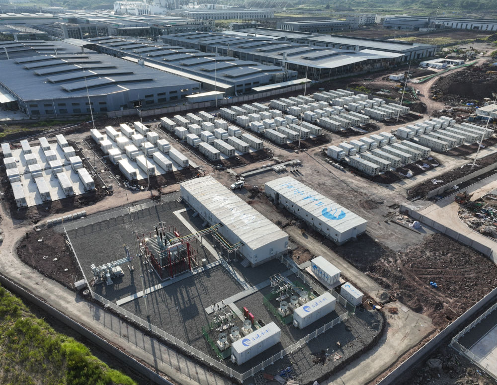 新建成的重慶永川松溉儲能電站。該儲能電站位于重慶市永川區港橋園區內,是2023年重慶市級重點(diǎn)項目之一(無(wú)人機照片,2023年8月14日攝)。新華社記者 王全超 攝