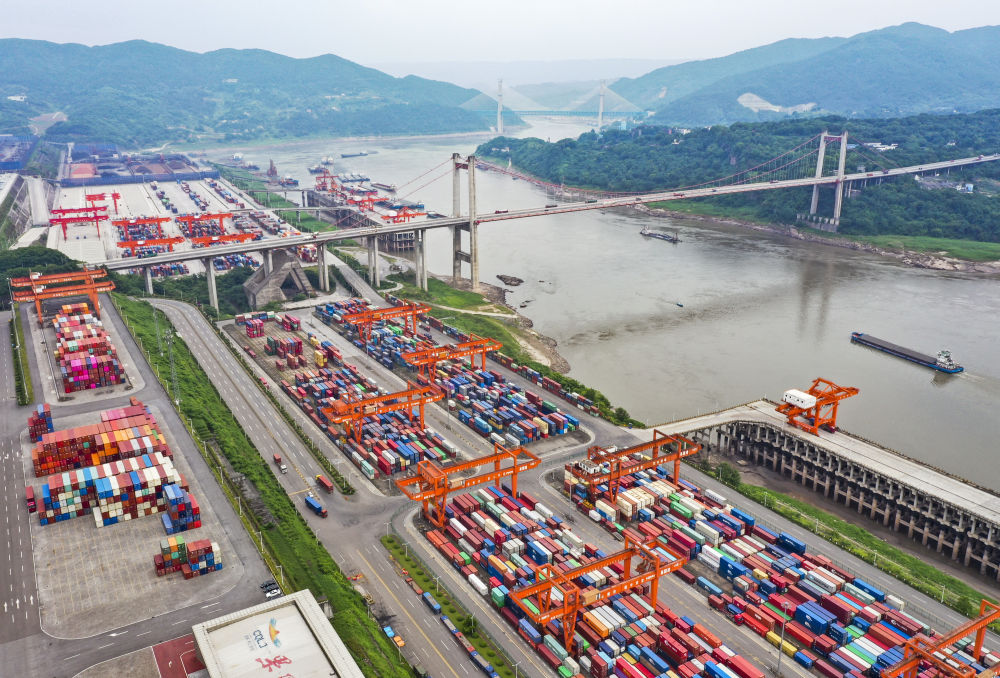 如今的果園港,已成長(cháng)為長(cháng)江上游地區聯(lián)通世界的“中轉站”——歐洲貨物搭乘中歐班列抵達果園港,再沿長(cháng)江轉運;東南亞貨物經(jīng)西部陸海新通道運至果園港,再經(jīng)長(cháng)江分撥,或乘中歐班列前往歐洲……